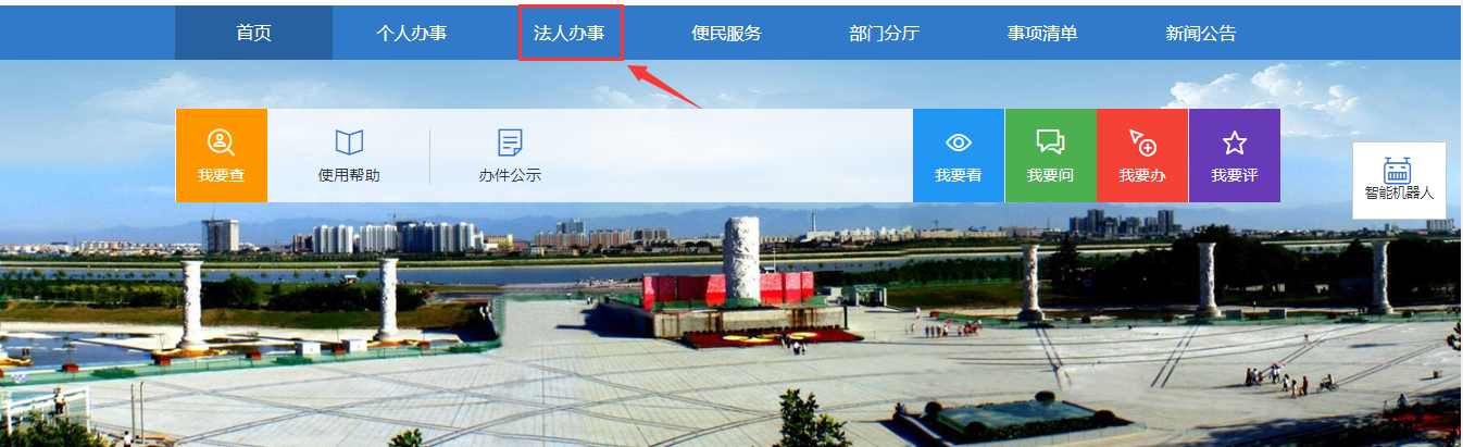 5.登录之后在首页选择法人办事或行政审批。
