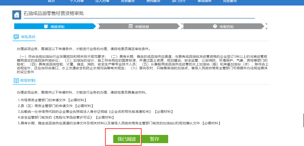 8.阅读须知,查看办理条件和所需材料,查看完毕点击我已阅读。