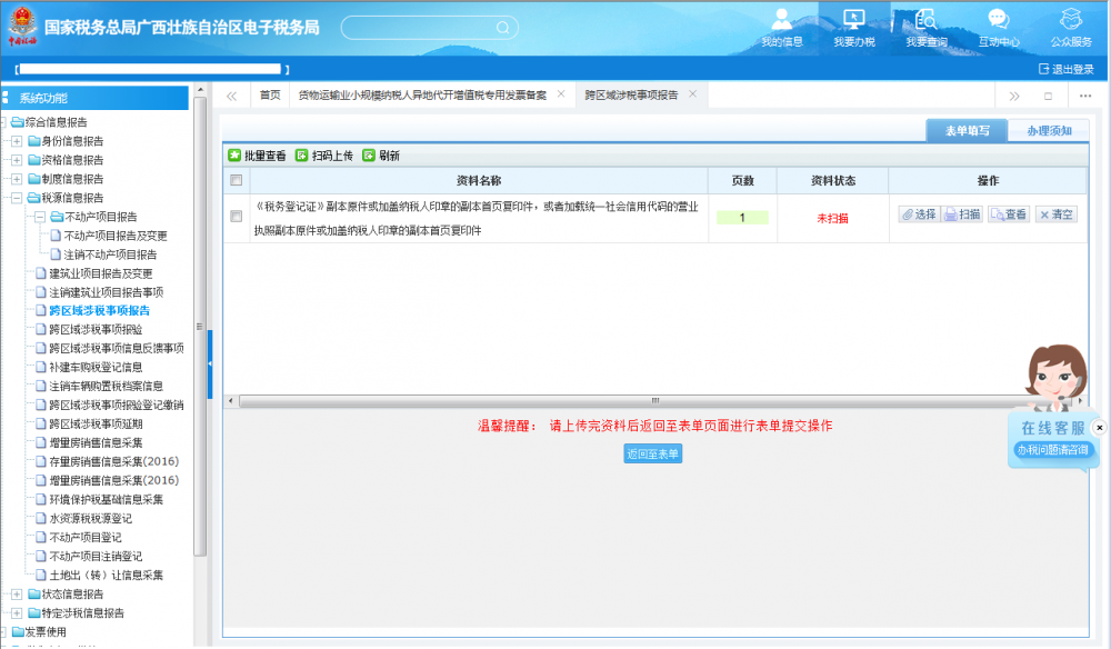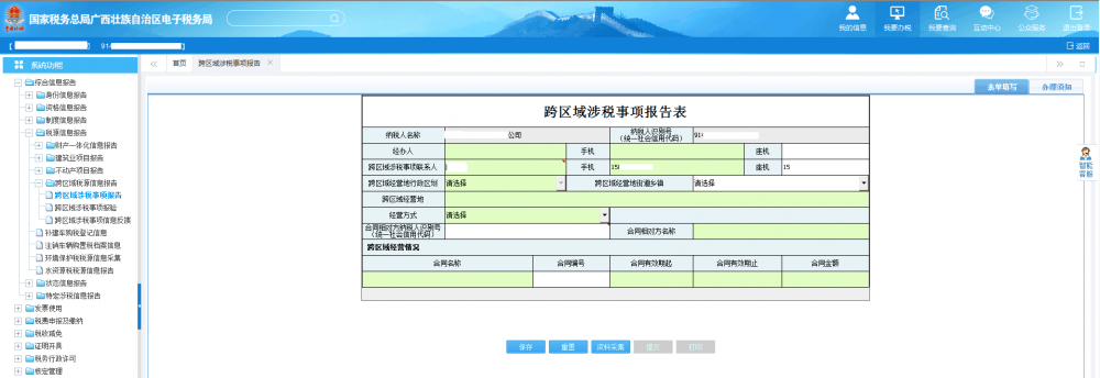 纳税人跨省税务机关管辖区域经营的,或省内跨地市经营的,应按规定填报《跨区域涉税事项报告表》。