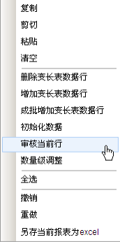 选定某一未通过审核的数据行的任一单元格,点击鼠标右键,在菜单中选择【审核当前行】,系统将在审核窗口中显示审核提示信息。根据提示信息修改数据即可。