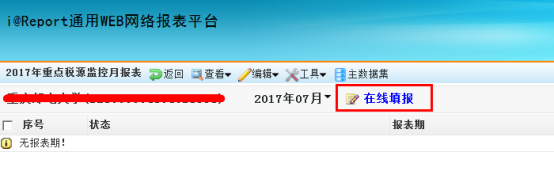 直接点击【在线填报】填写默认报表期的数据,或者点击默认报表期后面的下拉三角,填写其他期的数据。