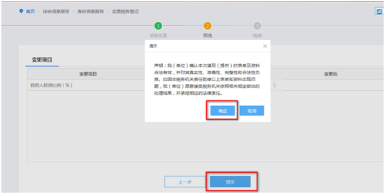 3.其中法定代表人(负责人)姓名、经营范围等不允许手工进行变更,这部分信息将通过调用工商税务信息交换平台中的信息直接进行展示,纳税人确认后即可完成变更。