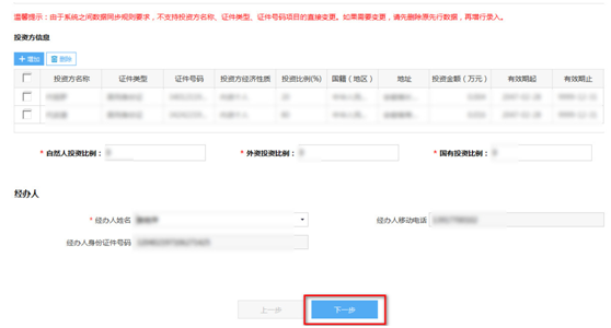 6. 填写完毕,点击[下一步]按钮提交当前数据。