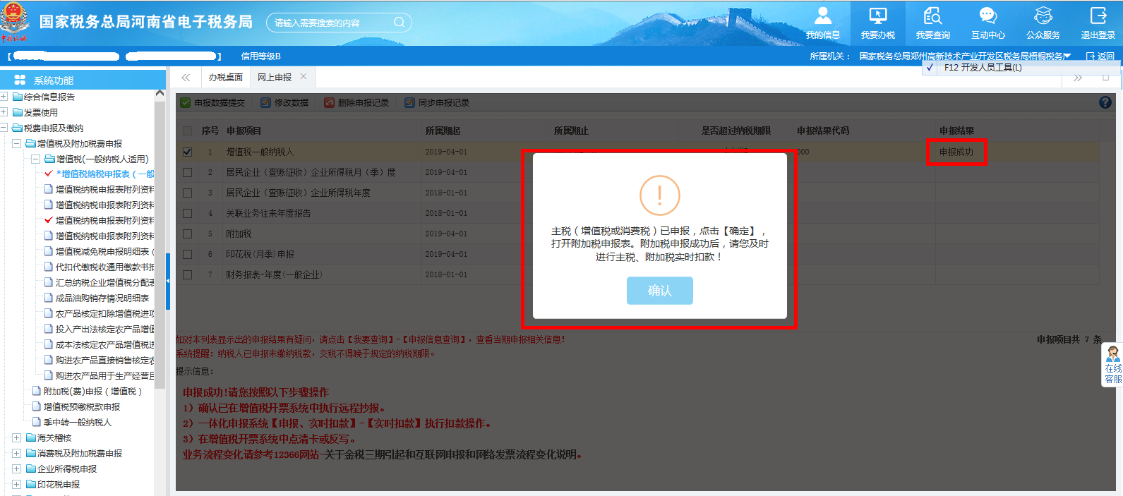 (4)申报成功后,如果发现申报数据错误,可以在申报、实时扣款模块,点击删除申报表,回到填表界面修改数据,再次申报;