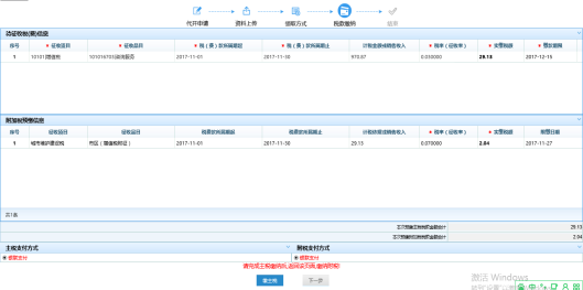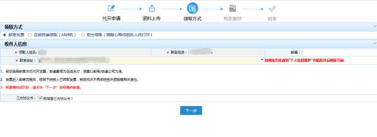 (一)选择邮寄发票后,系统提示邮寄协议书,点击“接受”,然后选择邮寄地址,点击下一步已进入税款缴纳页面。