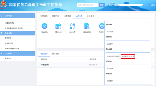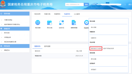操作流程:登陆重庆市电子税务局-互动中心-权益保护-违法举报-税收违法行为检举