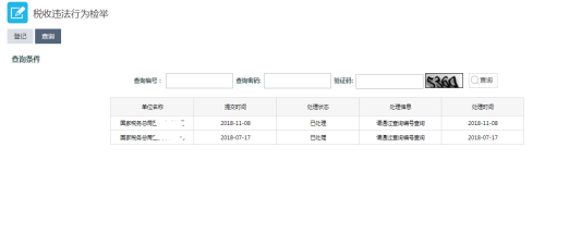 第三步:在“登记”界面输入相关信息,点击“提交”。在“查询”界面可查询信息的处理状态