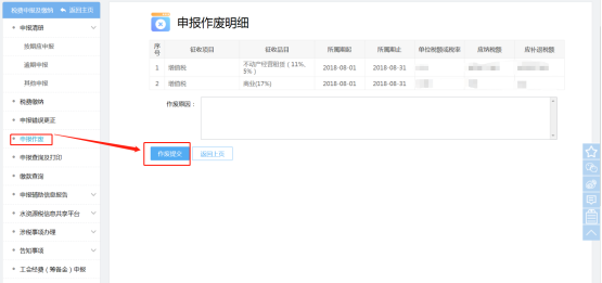 - 若操作人员发现表单填写有误,可在【申报作废】模块,作废报表。