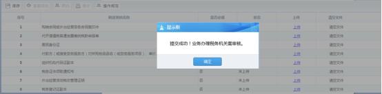 4、 附列资料逐个上传完毕,点击【提交】按钮,系统将提示提交成功,该申请提交到税务机关系统中,申请操作全部完成。