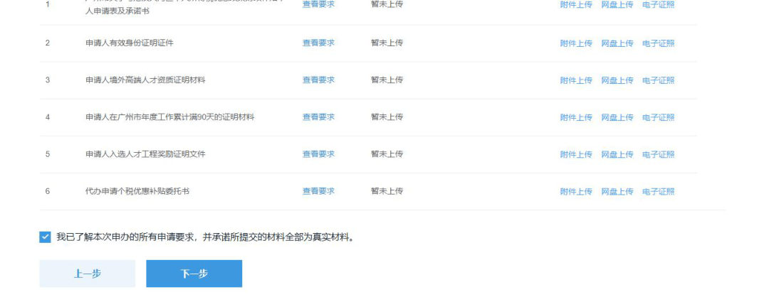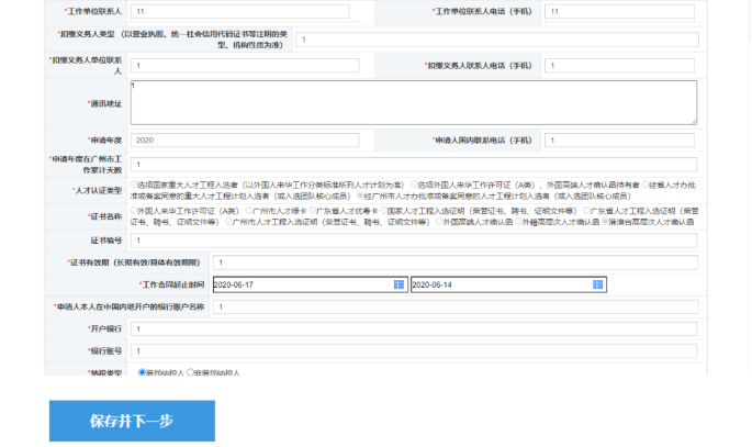 检查表单是否需要修改,如无则直接点击“保存下一步”按钮进入上传材料环节
