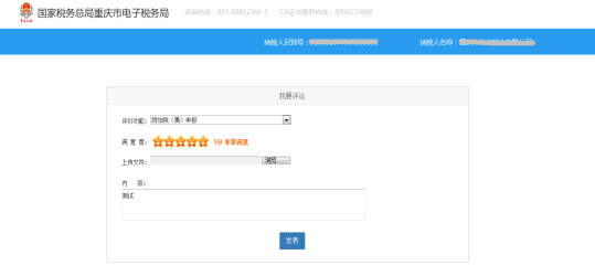 操作流程:登陆重庆市电子税务局-互动中心-办税评价-评价提交
