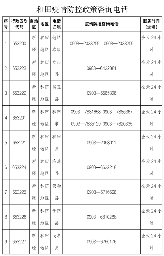 和田地区(含兵团第十四师)新冠肺炎疫情防控群众诉求热线电话