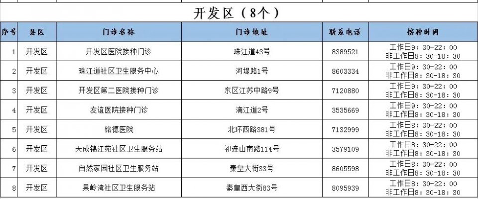 一、秦皇岛开发区新冠病毒疫苗接种点信息