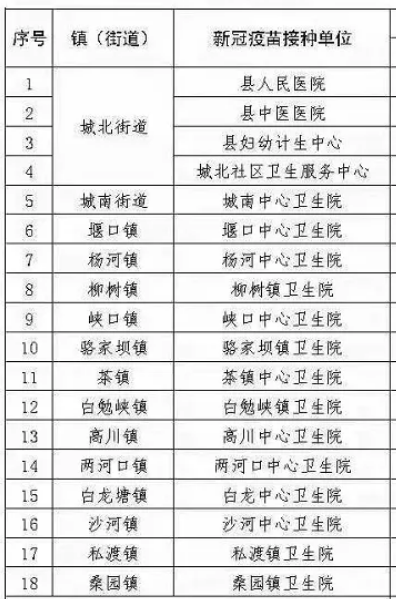 接种地点:汉中市西乡县城北街道办事处会馆巷8号;