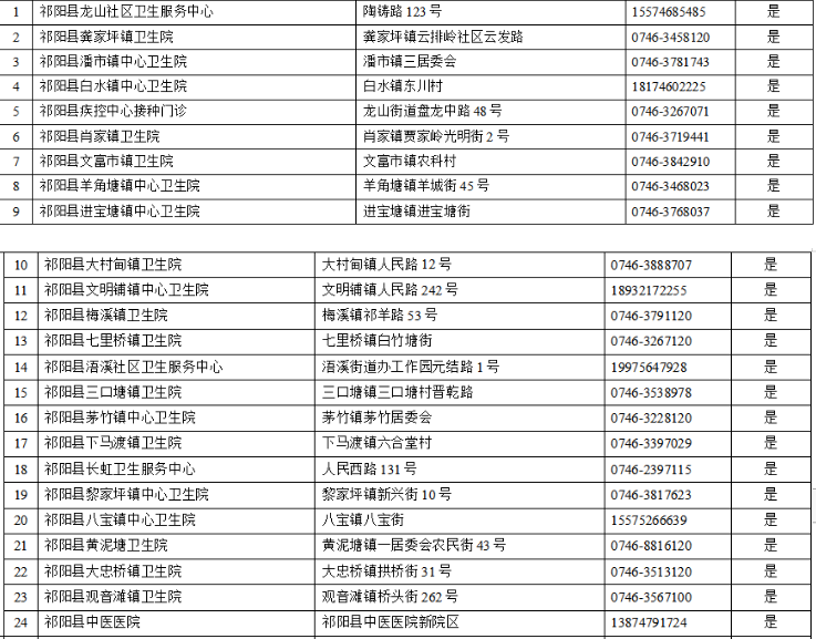 接种地点:湖南省永州市祁阳县长虹街道人民西路131号