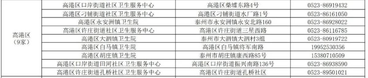 接种地点:江苏省泰州市高港区永安洲镇永安北路22号