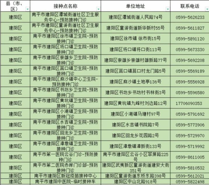 南平市建阳区新冠病毒疫苗接种点信息