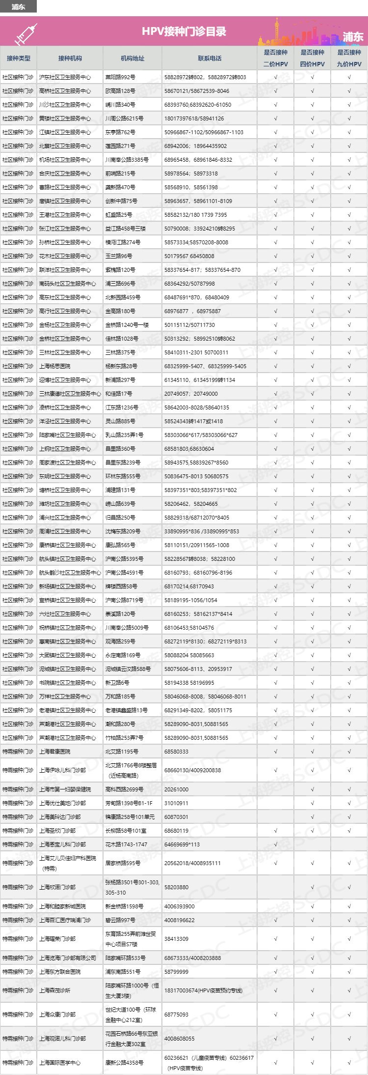 【导读】:上海市浦东新区如何预约HPV二价、四价、九价宫颈癌疫苗?浦东新区宫颈癌疫苗接种点有哪些?有哪些医院门诊可以接种HPV疫苗?浦东新区宫颈癌疫苗预约电话多少?上海疾控中心公布浦东新区hpv疫苗预约接种点地址、电话、服务时间、网上预约流程及注意事项。有需要接种hpv疫苗的市民可咨询了解: |