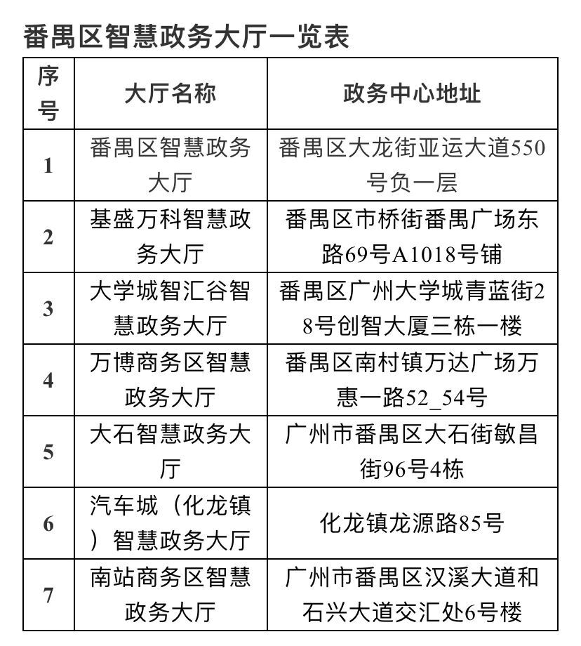单位地址:广州市番禺区南村镇万达广场万惠一路52-54号番禺区政务服务中心万博分中心5-9号综合窗口