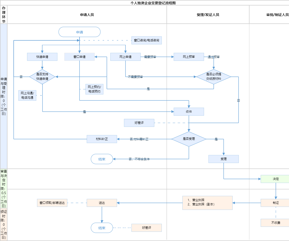 法条(具体规定)内容 第二条 个人独资企业的设立、变更、注销,应当依照《个人独资企业法》和本办法的规定办理企业登记。第七条:设立个人独资企业,应当由投资人或者其委托的代理人向个人独资企业所在地登记机关申请设立登记。 第十三条:合伙企业登记事项发生变更的,执行合伙事务的合伙人应当自作出变更决定或者发生变更事由之日起十五日内,向企业登记机关申请办理变更登记。第十八条:个人独资企业依照《个人独资企业法》第二十六条规定解散的,应当由投资人或者清算人于清算结束之日起15日内向原登记机关申请注销登记。