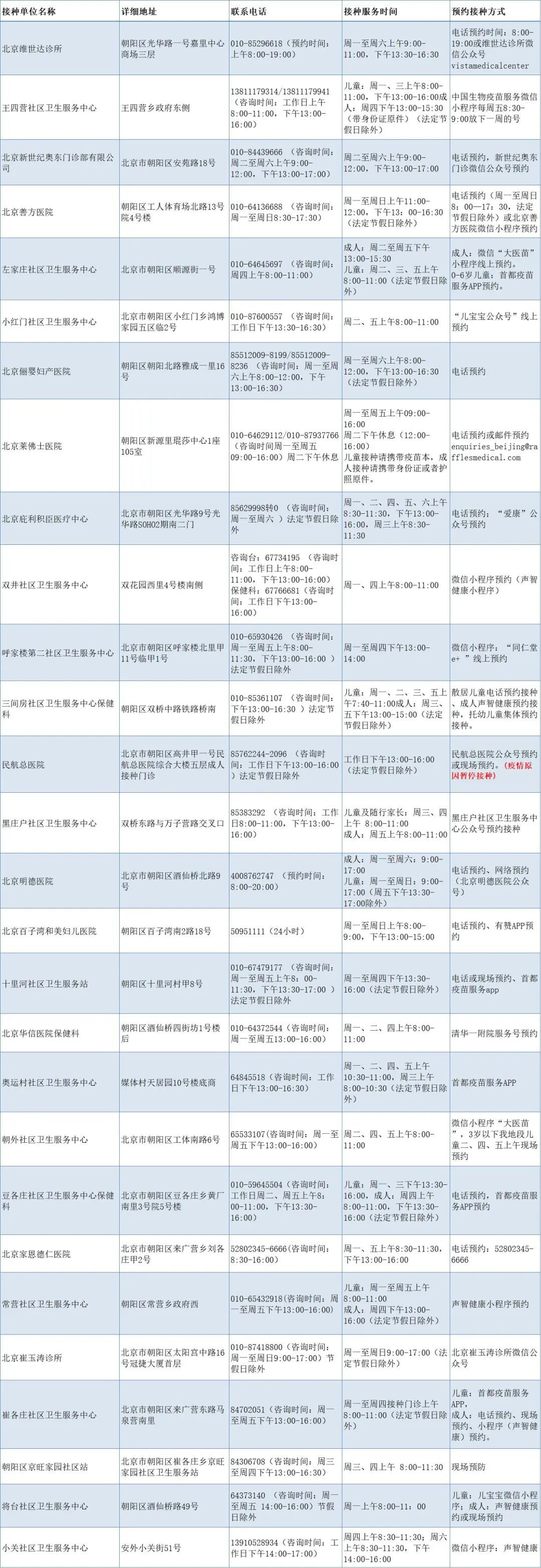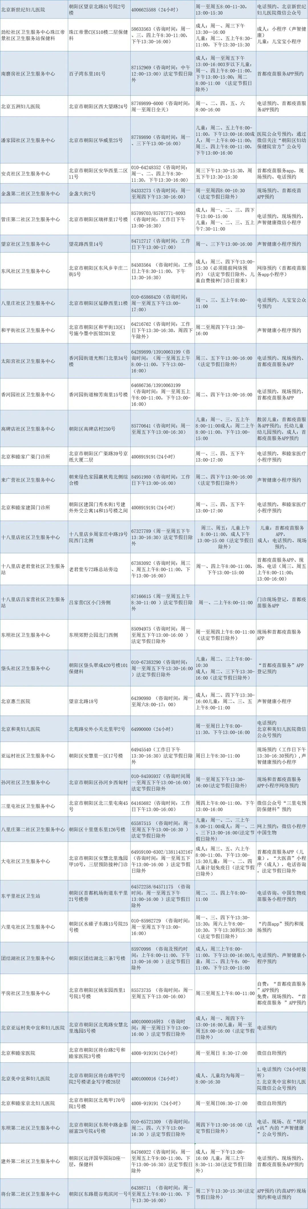 一、北京市朝阳区免费流感接种门诊