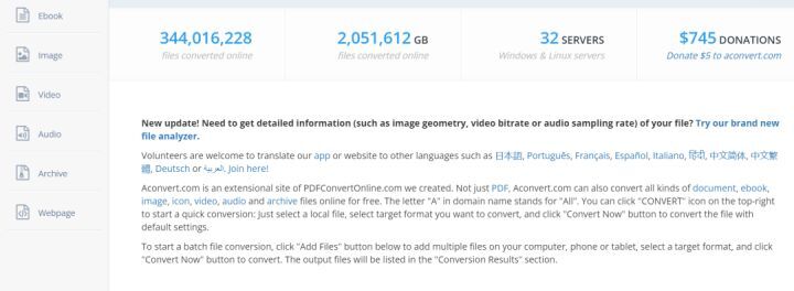 您可以利用网站在线转换各类PDF、文档、电子书、图像、图标、视频、音频和压缩文件等。