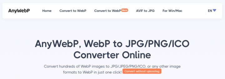 您可以用网站免费在线转换图片格式,支持WebP和JPG、PNG、ICO等常见格式相互转换。