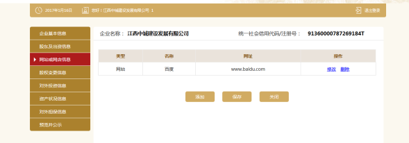 进入网站或网店信息页面。可添加多条网站或网店信息,也可修改或删除信息。