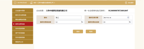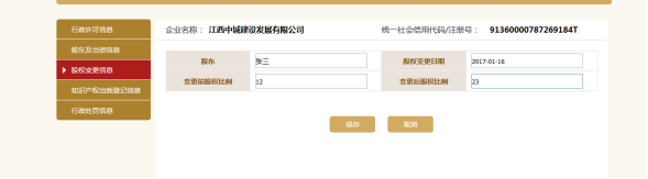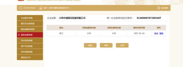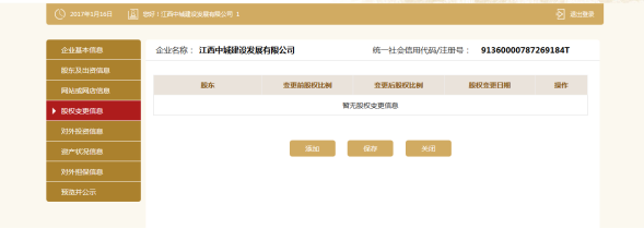 点击添加,填写股权变更信息。点击保存。