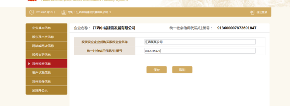点击添加,填写外投资信息。点击保存。
