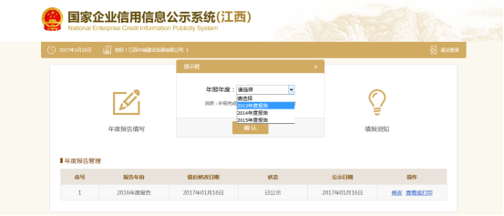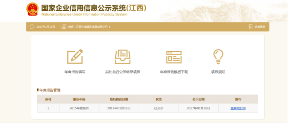 点击提交并公示,点击确认,进入年度报告管理页面。