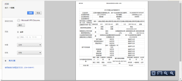 点击预览打印,注意:请仔细核对填报信息,需对公示信息的真实性、合法性负责。点击打印即可打印,无需打印点击取消。