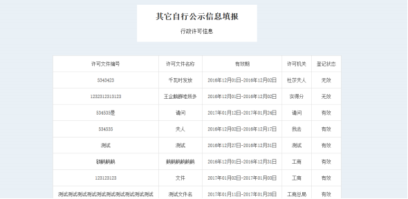 点击其他自行公示信息填报,首先进入行政许可信息,
