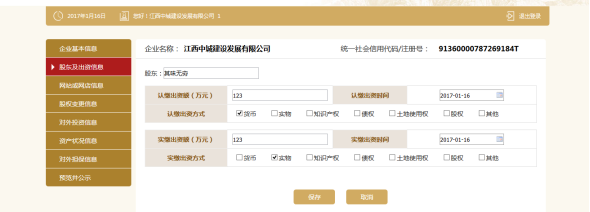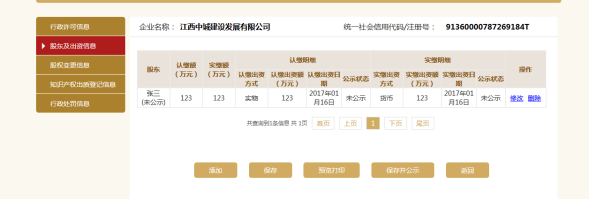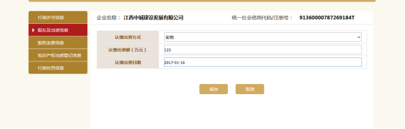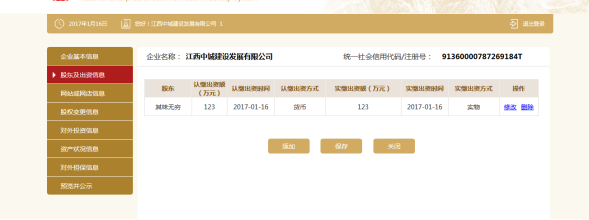 点击保存则回到显示页面,如果添加了实缴,点击修改进去可添加认缴,反之亦然