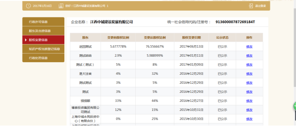 股权变更信息,可添加多条股权变更信息,也可修改或删除信息。