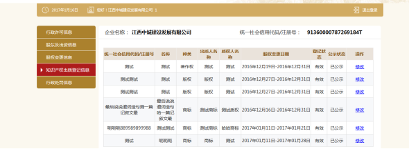 知识产权出资登记信息,可添加多条知识产权出资登记信息,也可修改或删除信息。