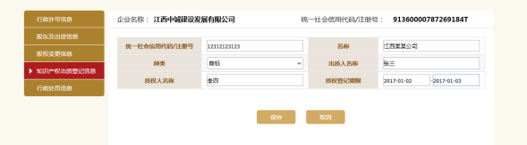 知识产权出资登记信息,点击保存。