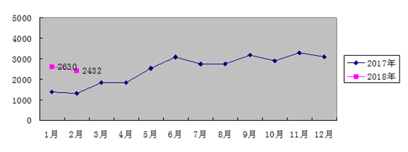 2018年2月,12315指挥中心共登记消费者来电、来访、来函、互联网络、上级交办的投诉、举报、咨询2432件,较去年同期涨幅较大。其中,消费者咨询2193件(指导消费者投诉290件),属于工商部门受理范围的投诉210件、举报29件,共为消费者挽回经济损失27.5万元。