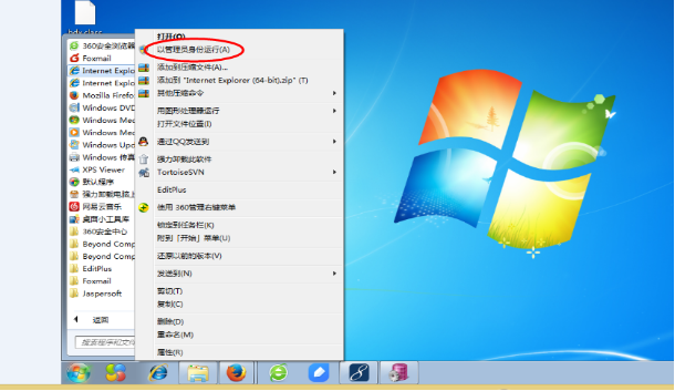 1、如果用户使用是非Xp系统,在开始菜单中打开IE浏览器时右键选择以管理员身份运行,如下图