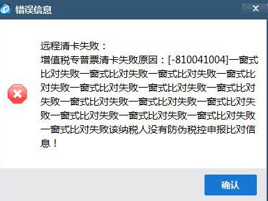 1.企业申报成功了,但是远程清卡时提示以下错误,如下图: