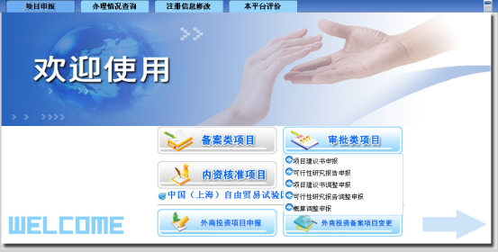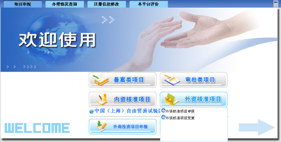 1外资核准项目申报:点击,如下图所示: