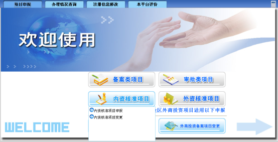 2外资核准项目申报:点击,如下图所示: