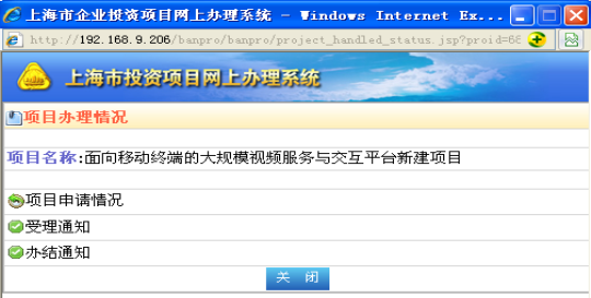(4) 点击“政务大厅”-“上海市投资项目网上办理系统”,即或直接在IE浏览器的地址栏内输入http://222.66.64.156/banpro,进入系统,登录界面如下图所示: