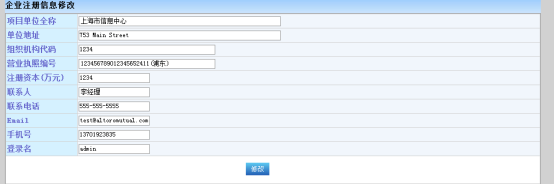 可以修改企业先去注册时的信息资料,如下图所示: