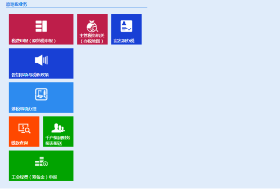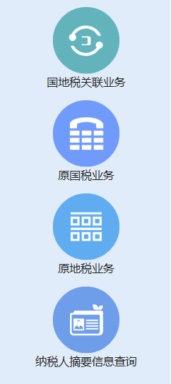 注:只要在原国税或原地税其中一方办理过开业登记,就可以正常登录,但只能使用单方的功能和国地税关联业务。即:如用户仅在原国税有登记,则不能使用“原地税业务”;如用户仅在原地税有登记,则不能使用“原国税业务”。