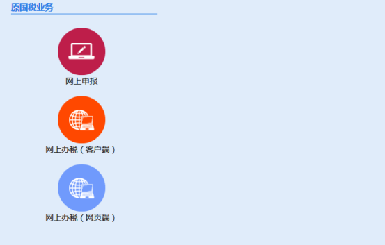 原国税业务包含三大功能,分别是网上申报、网上办税(客户端)、网上办税(网页端)。点击网上申报、网上办税(客户端)功能时,如果用户电脑上尚未安装原北京国税报税软件,系统会自动下载安装原国税报税软件,安装完成后再次点击即可;如果用户电脑上已经安装原北京国税报税软件,系统会自动打开原国税报税软件对应的功能,不需要再次登录认证。