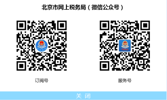 点击显示国家税务总局北京市税务局官方微信服务号、订阅号二维码。