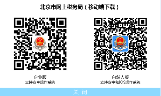 点击显示国家税务总局北京市税务局手机版二维码,包括企业版、自然人版。