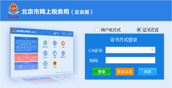 如果用户仅在地税有登记信息,则只有证书方式登录才可以使用该功能。界面如下图所示: