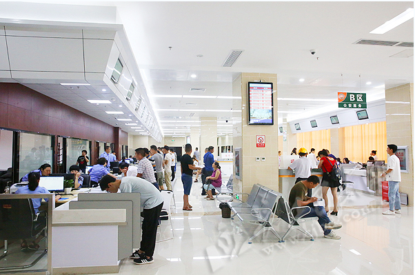 二楼大厅分设三个功能分区,右侧不动产登记区、中部项目联审区、左侧办税服务区。从2018年7月开始,除非税窗口及车购税窗口以外,其他岗位设置全部为综合窗口,国地税人员交叉设置岗位,交换设置权限,交换学习业务,互领税务发票,国地税业务全面通办,让纳税人进“一家门”办“两家事”。同时,设置自助办税机和外网自助办税窗口,大力推行税企通APP、二维码问税,方便税企沟通;编印网上办税操作手册,方便纳税人网上办税;对异地办税纳税人提供邮寄服务,减少纳税人的办税成本和时间。